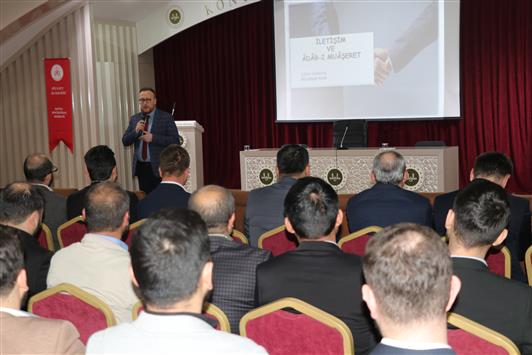 Dini İhtisas Merkezimizde, Din Görevlileri Mesleki Gelişim Kursu kapsamında Eğitim Görevlilerimizden Murathan Kırdı tarafından “İletişim ve Âdâb-ı Muâşeret” konulu konferans gerçekleştirildi. Katkılarından dolayı kıymetli hocamıza teşekkür ederiz.